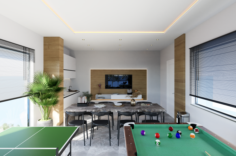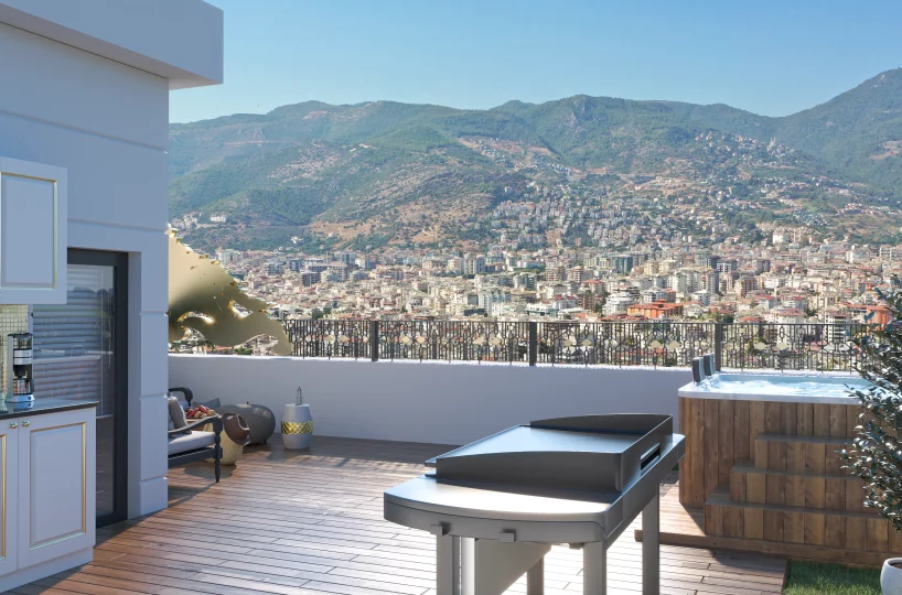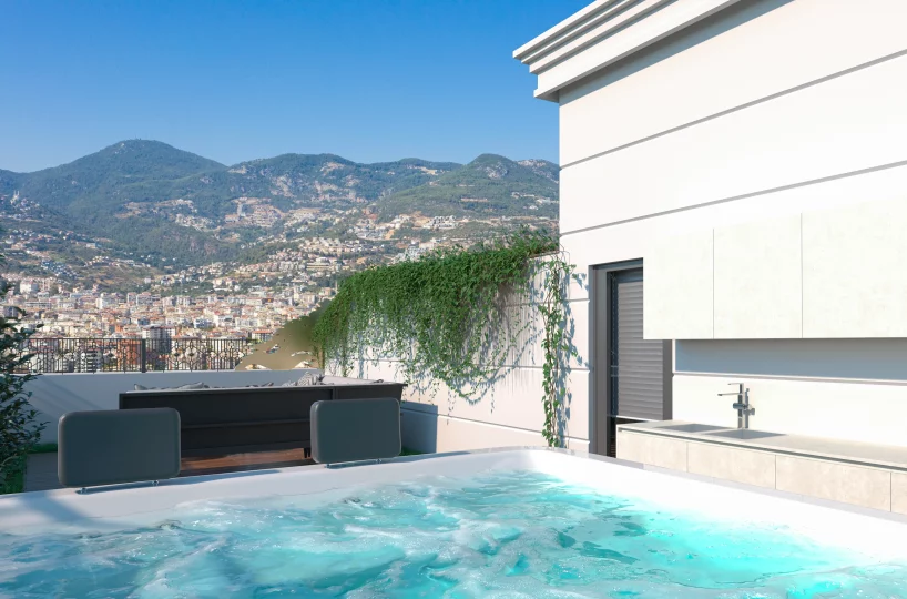 This 1+1 residence is meticulously designed to maximize comfort and functionality within a premium footprint. The standout feature is the expansive terrace, which transforms the living space by integrating outdoor luxury with indoor comfort, complete with infrastructure for a summer kitchen and jacuzzi.