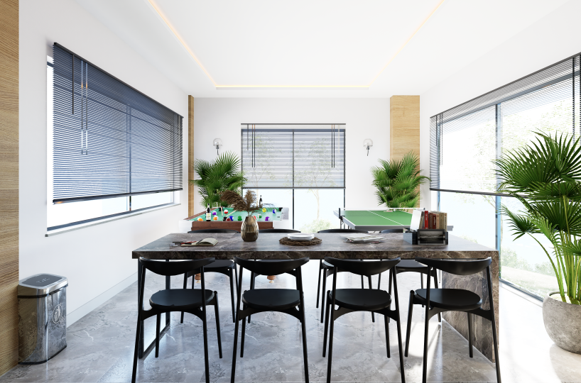 • Lounge: Social game room featuring billiards, table tennis, and a cozy seating area.