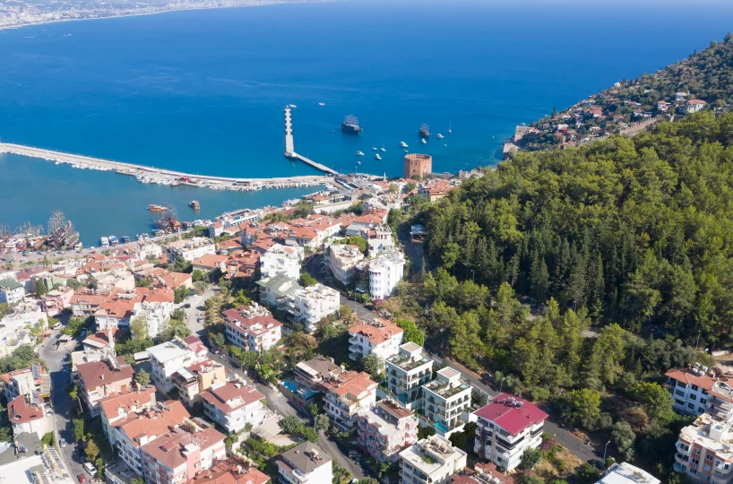 The location is arguably the most valuable asset of this property, nestled between the historic Alanya Castle and the Mediterranean Sea. It offers a car-free lifestyle where history, nature, and city life converge.
