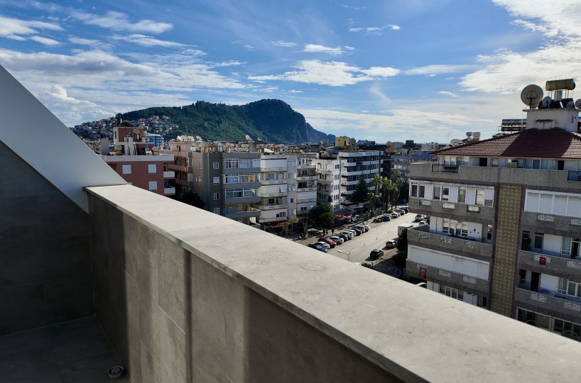 Welcome to one of the most prestigious and spacious residences in Alanya’s city center. This palatial 3+1 penthouse residence for sale in Alanya offers a massive 94 m² net and 117 m² gross living space, making it the crown jewel of this boutique building. Located a mere 215 meters from the iconic Cleopatra Beach, this residence provides a life of unmatched luxury and convenience. The residence is completely finished, turnkey, and ready for occupancy, with all legal permits and “iskan” successfully obtained. This is a rare find for large families or investors seeking a flagship property in a prime location that overlooks the Mediterranean, Alanya Castle, and the majestic mountains.