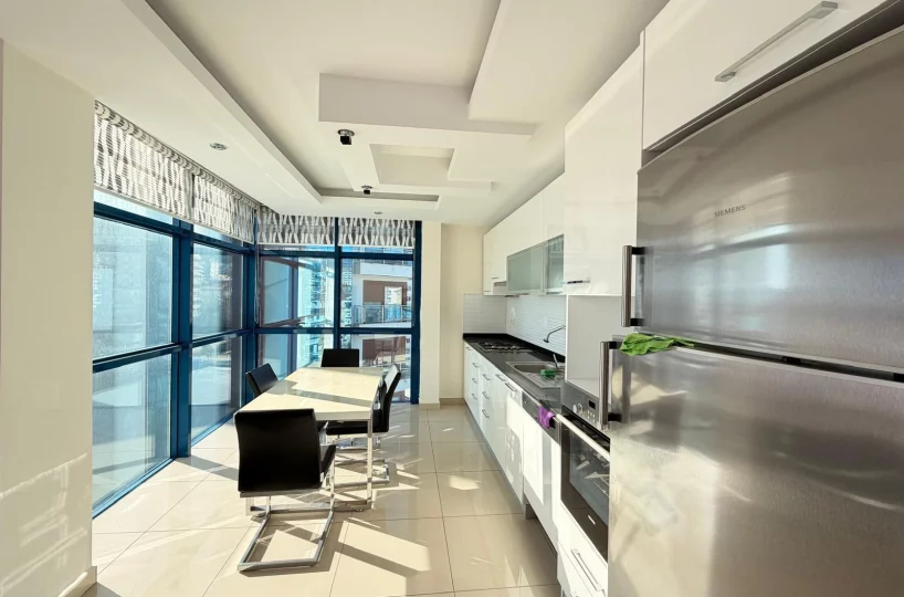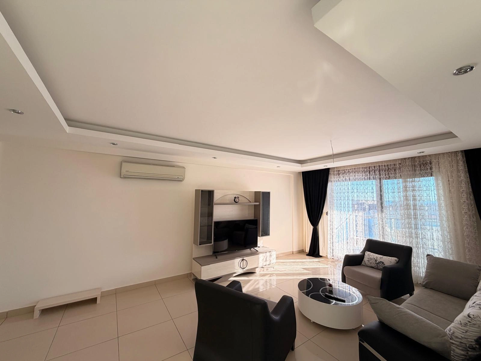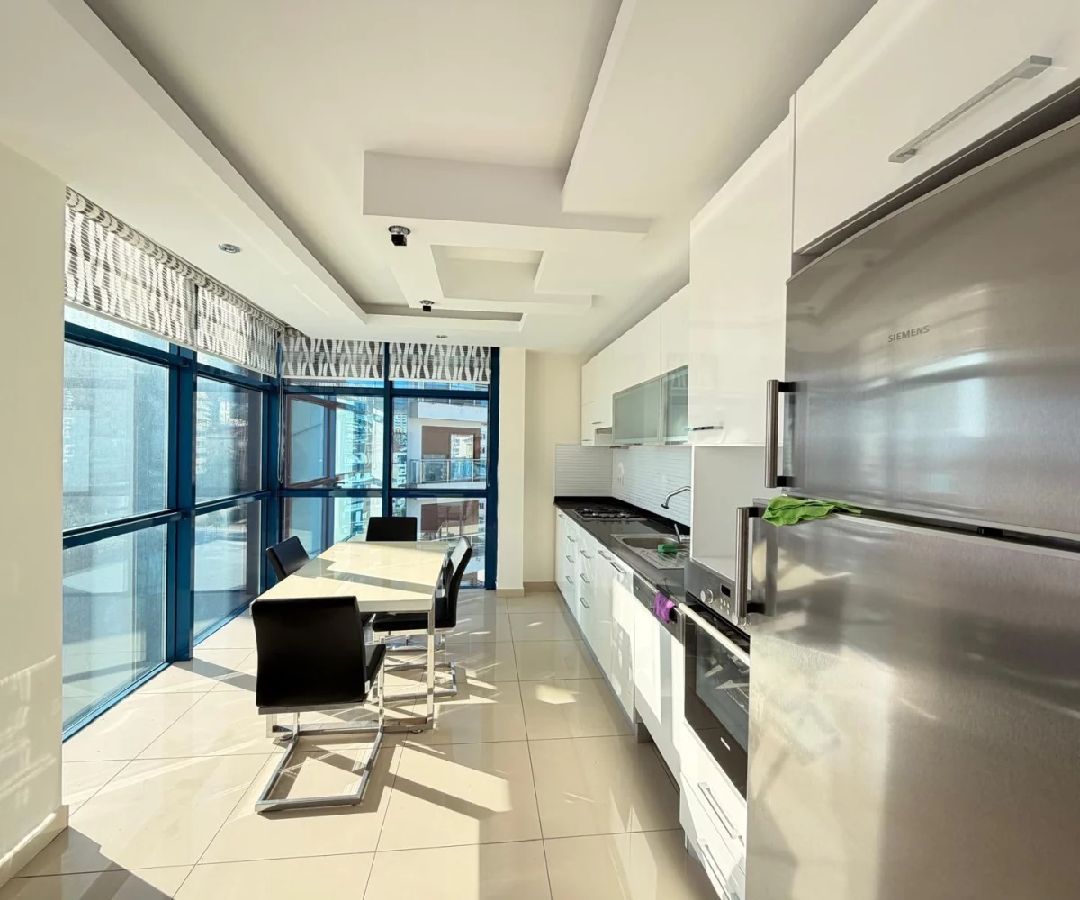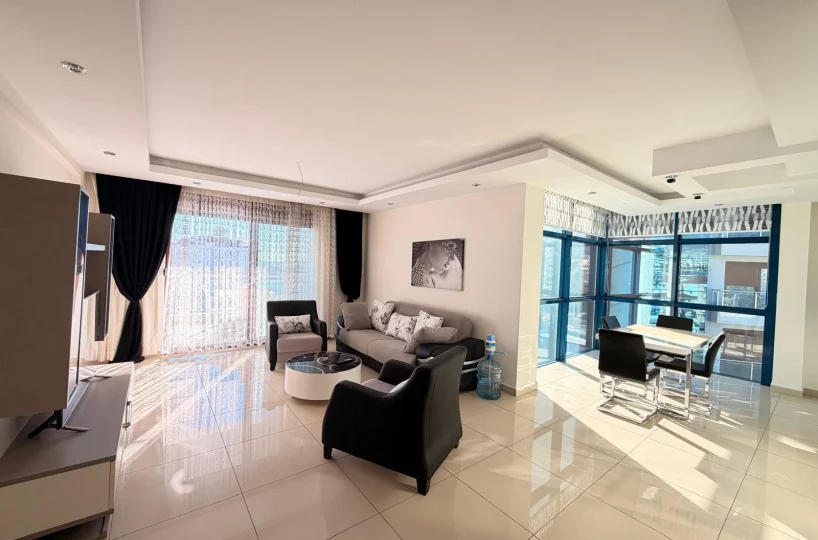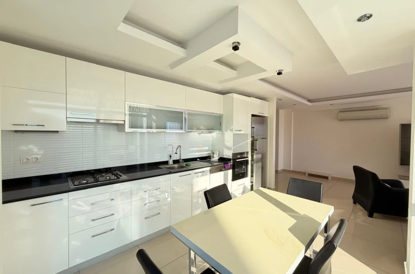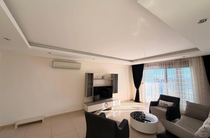 This spacious and bright apartment is located in the quiet residential area of Cikcilli. The property offers a functional living space with modern furniture, making it ready for immediate move-in. Its high floor position and southern orientation provide natural light and a pleasant view of the Mediterranean Sea.