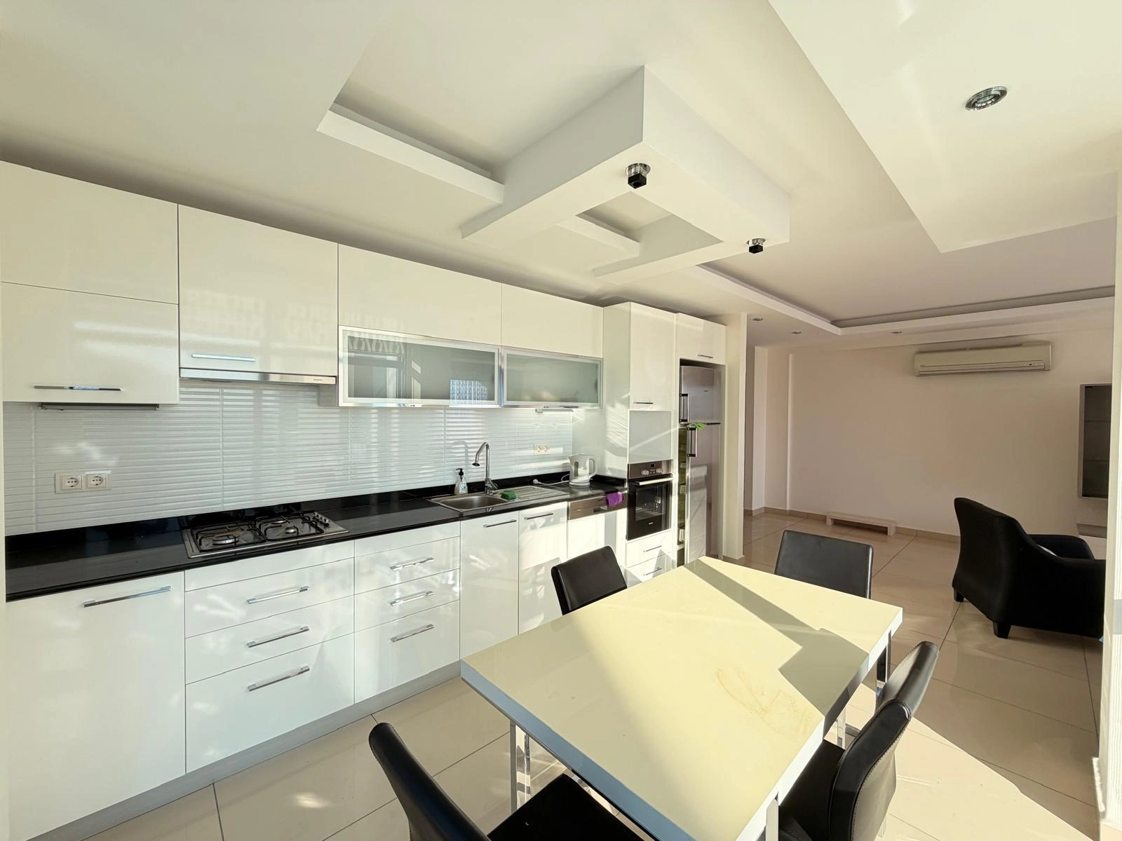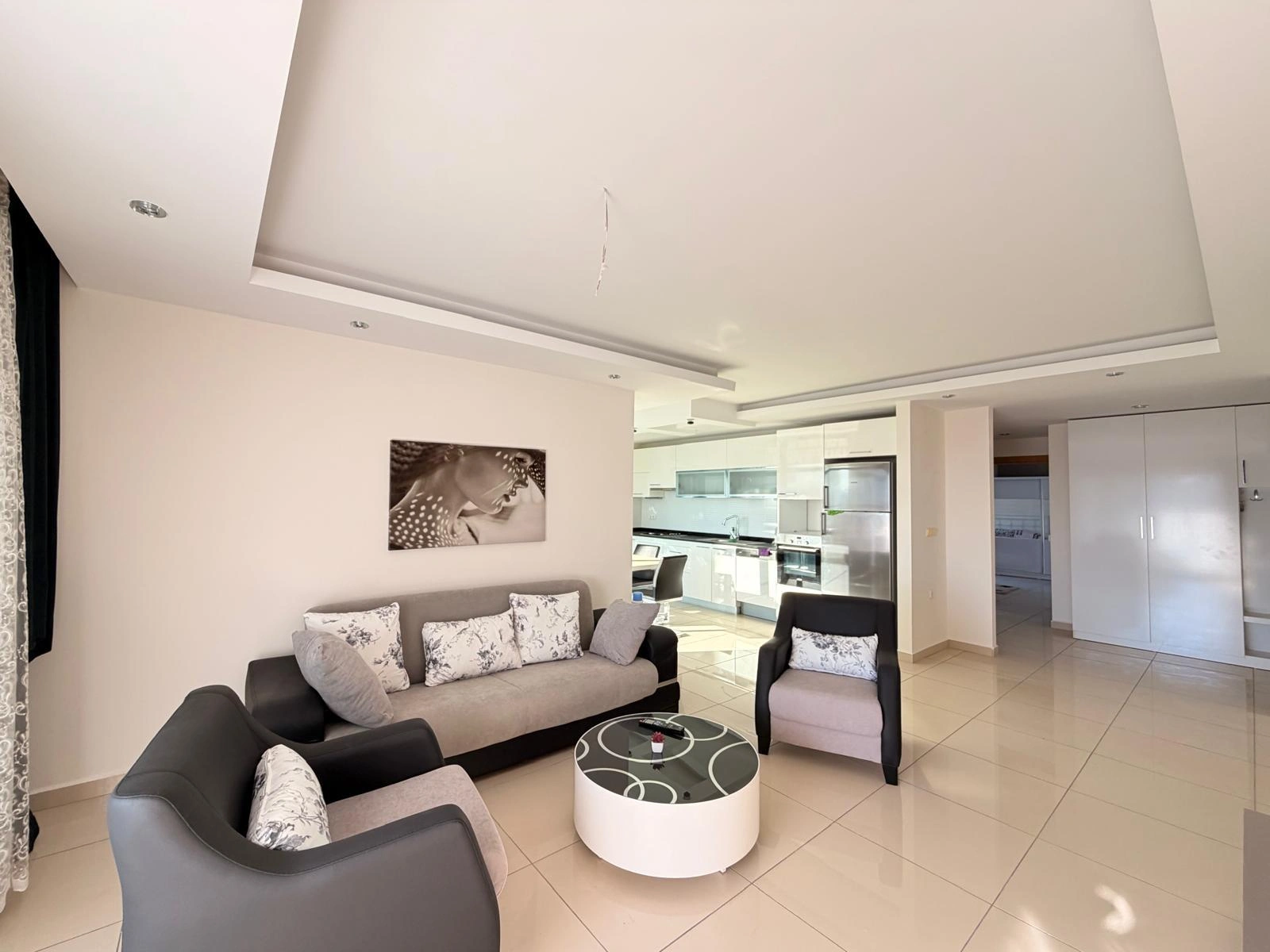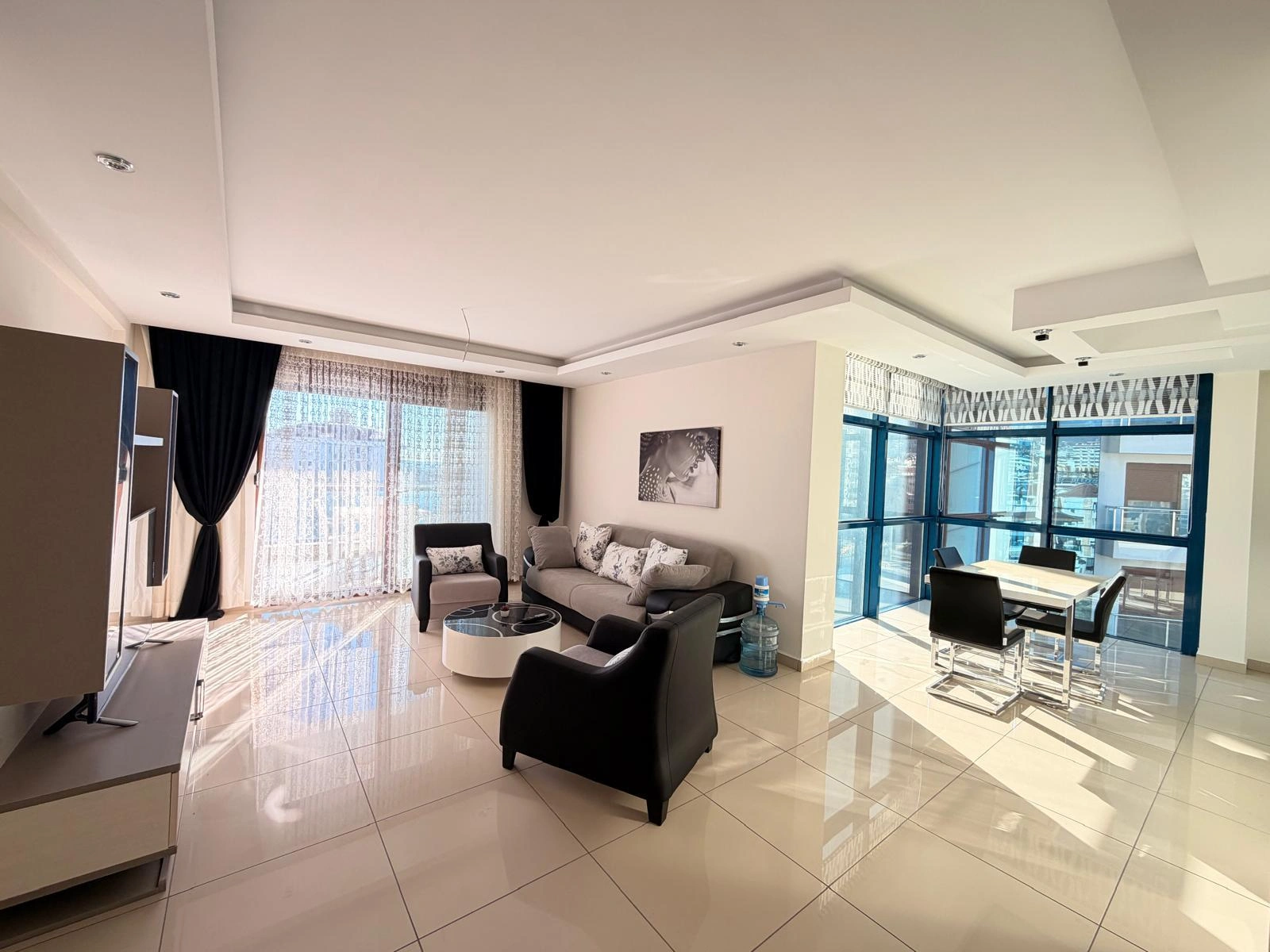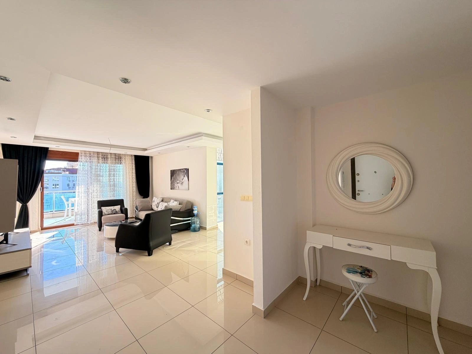 This spacious and bright apartment is located in the quiet residential area of Cikcilli. The property offers a functional living space with modern furniture, making it ready for immediate move-in. Its high floor position and southern orientation provide natural light and a pleasant view of the Mediterranean Sea.