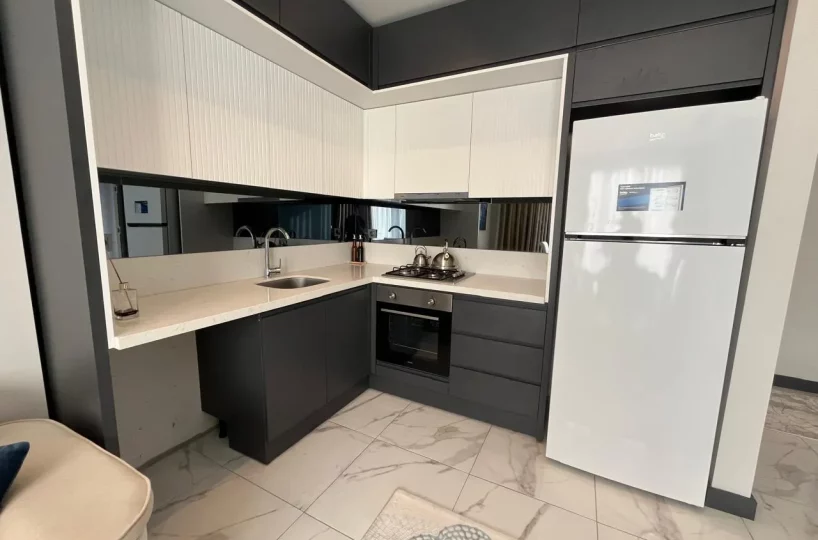 The building offers a wide range of amenities such as indoor and outdoor swimming pools, fitness center, sauna, Turkish bath, steam room, garden, gazebo, children’s playground, game room, and a generator ensuring uninterrupted power supply.
