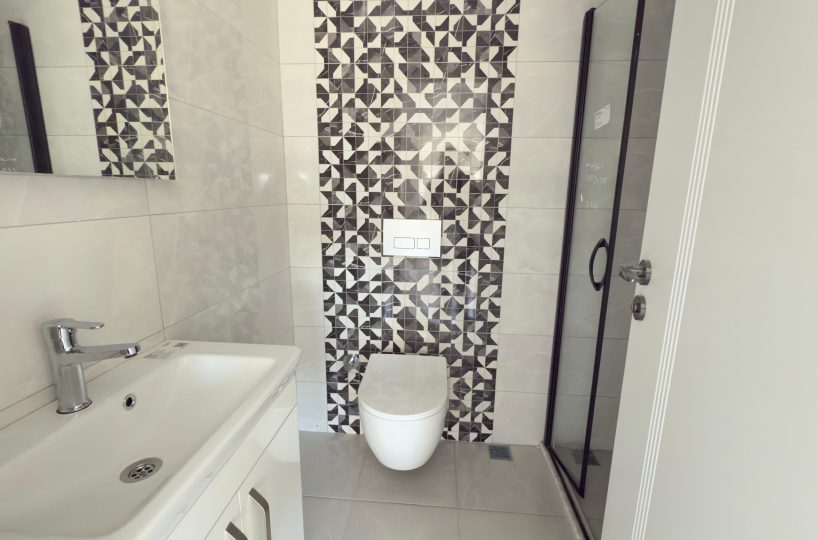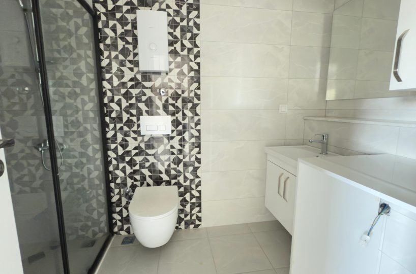 -equipped bathroom (shower, plumbing kit, built-in furniture, wall mirror)