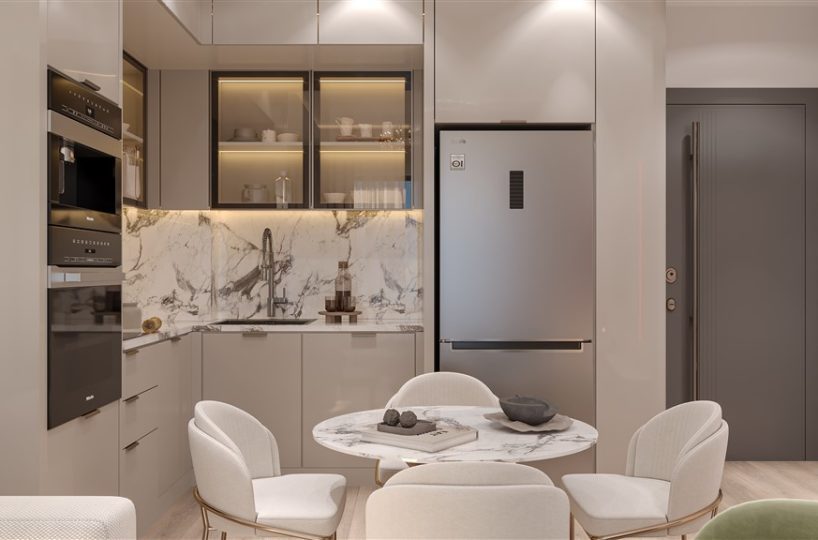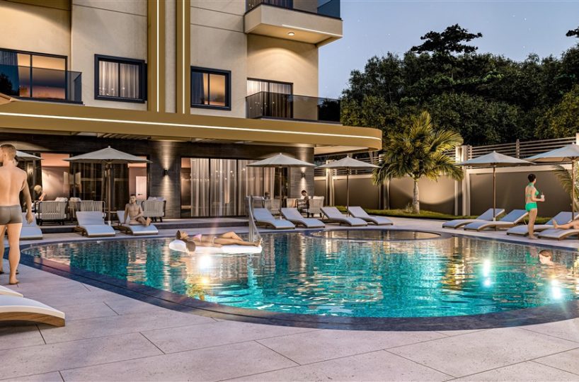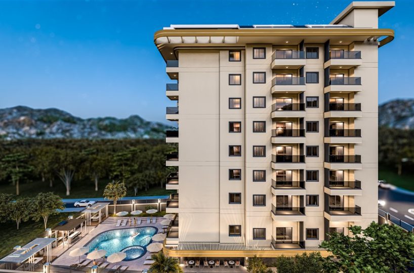 We present a modern one-bedroom apartment situated within a newly developed residential project in the Mahmutlar district of Alanya. Located exactly 1,000 meters from the Mediterranean shoreline, this property offers a comfortable living environment surrounded by extensive on-site social facilities. The residence is specifically designed to provide residents with easy pedestrian access to established urban infrastructure while maintaining a peaceful and functional residential atmosphere for daily living.