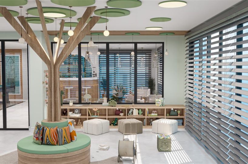 - Leisure Rooms: Features a specialized indoor children’s playroom and a separate game room designed for adult and teenage residents.