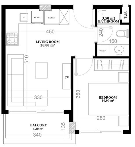 • Interior Space: 38 m² of gross area, with a net living space of 33.50 m².