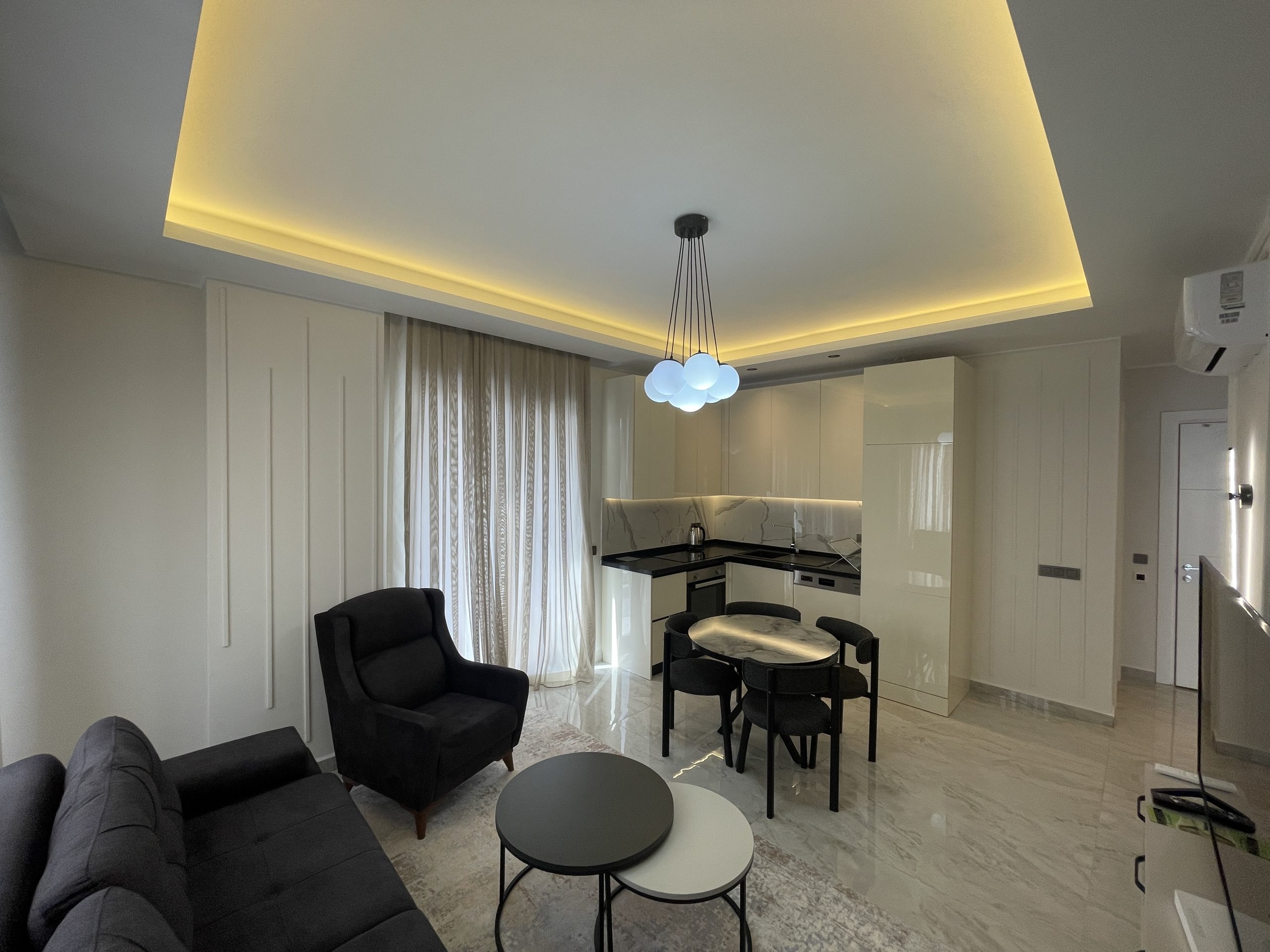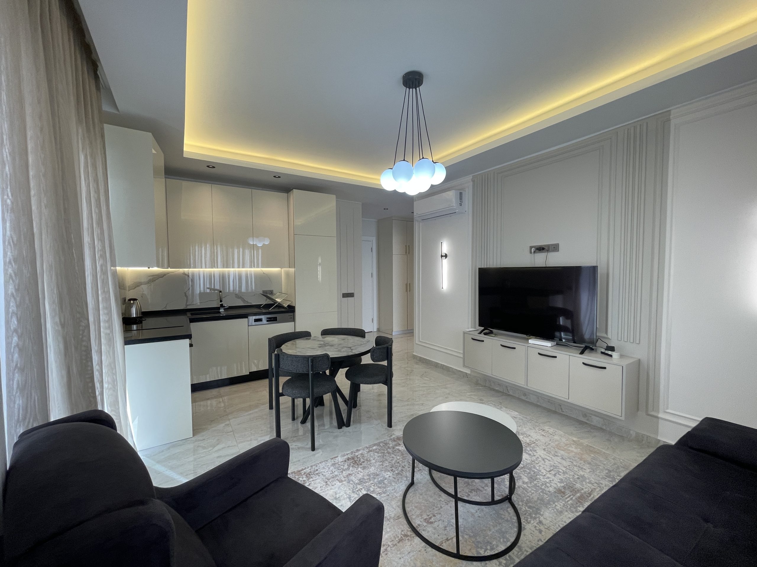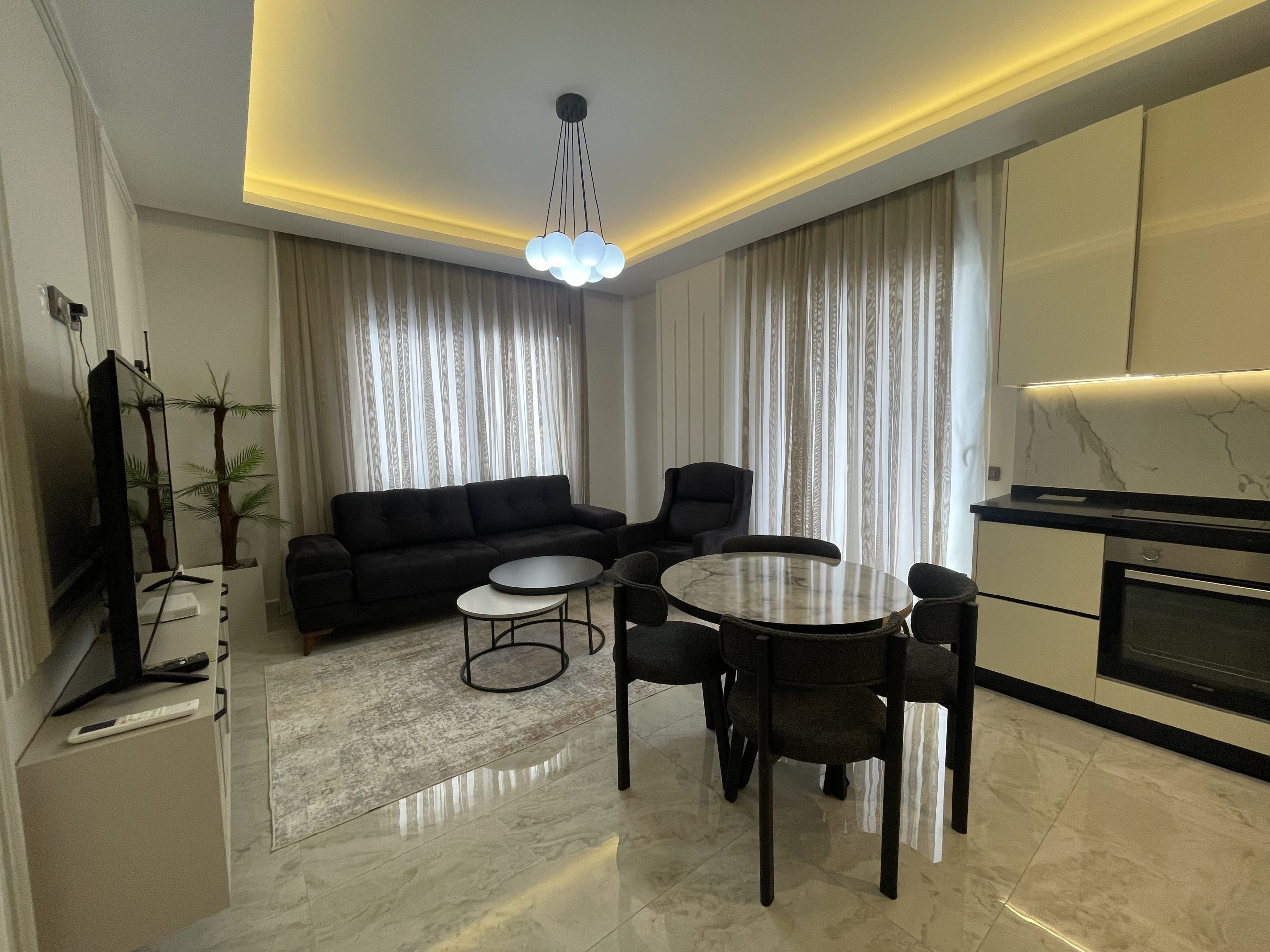 Located in the peaceful yet central area of Alanya Cumhuriyet, this stylish 2+1 fully furnished apartment offers a unique blend of comfort, luxury, and excellent investment potential. Thanks to its 420-meter proximity to the beach and walking distance to the city’s full infrastructure, it is an ideal choice for both living and year-round rental income.