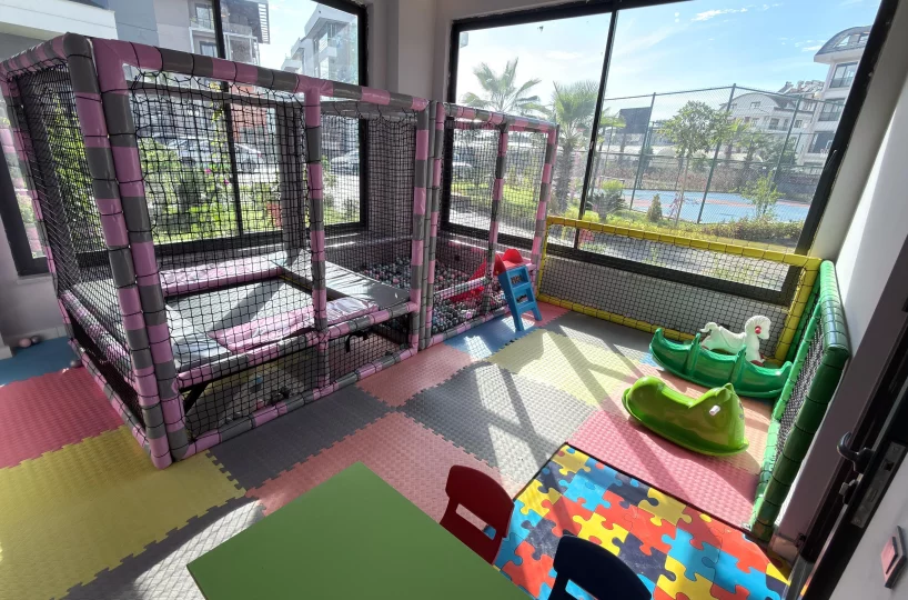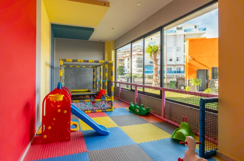 - Children’s Spaces: Dedicated indoor playroom and both indoor and outdoor playgrounds for year-round use.