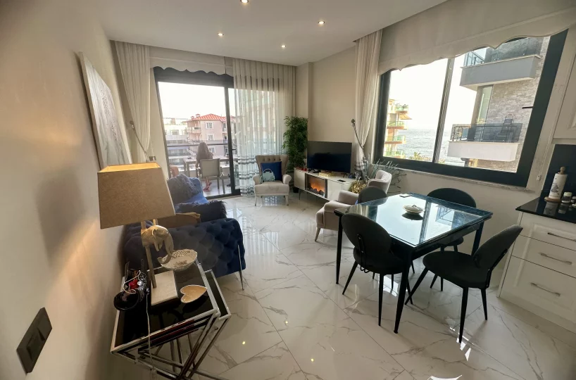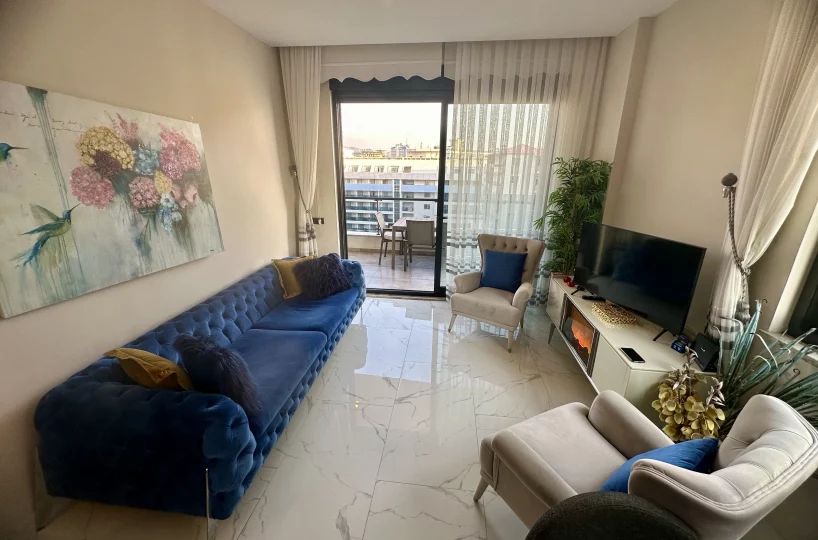 Perched on the 6th floor, this spacious 2+1 apartment spans a gross area of 100 m². Completed in 2021, the residence is designed with contemporary aesthetics and is being sold fully furnished with high-end, modern furniture, offering a turnkey solution for its new owners.