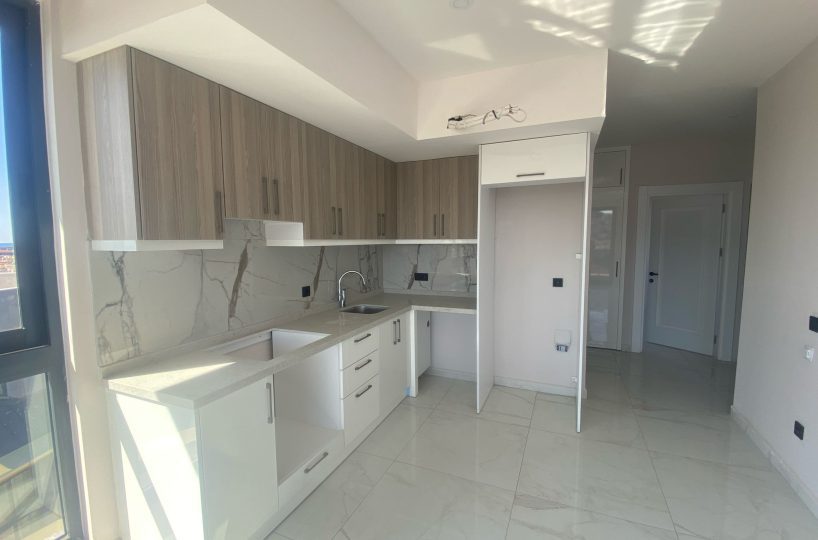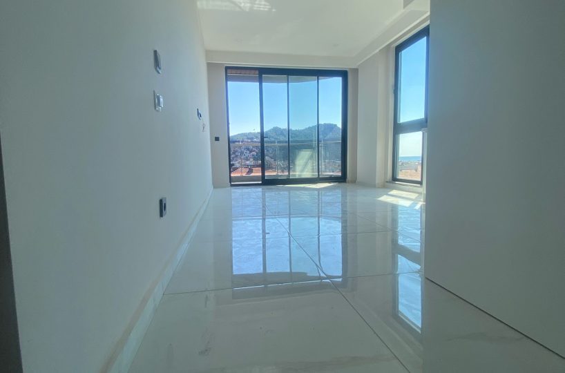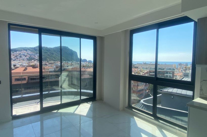 This contemporary apartment is situated on the seventh floor of a recently completed residential building in the center of Alanya. Located 500 meters from Cleopatra Beach, the property offers panoramic sea views and direct access to urban amenities, providing a highly functional living space for permanent residence or investment purposes.