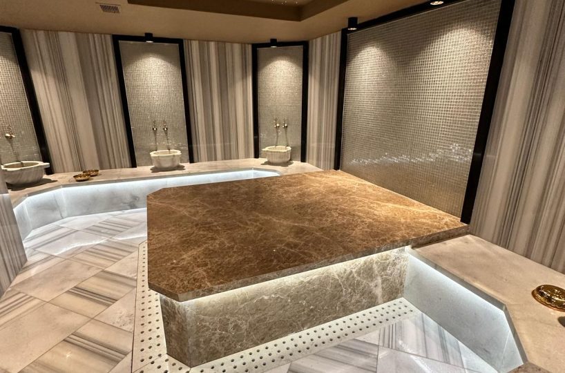 - Health Facilities: Features a traditional Turkish bath, a wooden sauna room, and a fully equipped indoor fitness center.