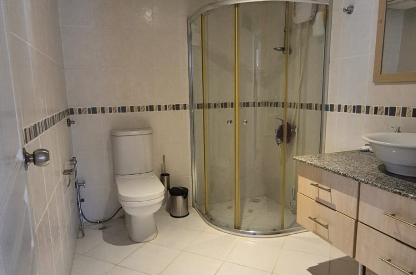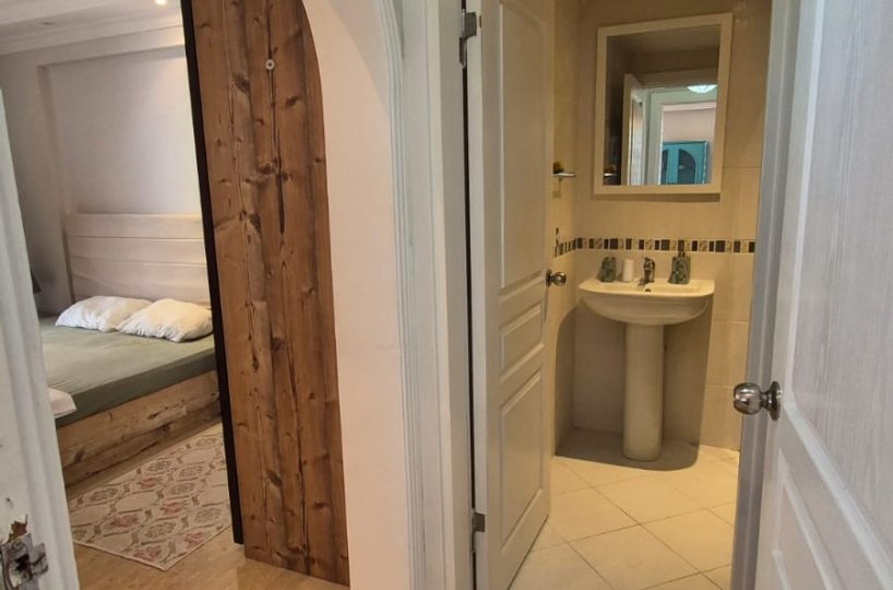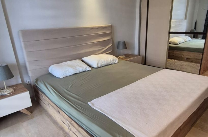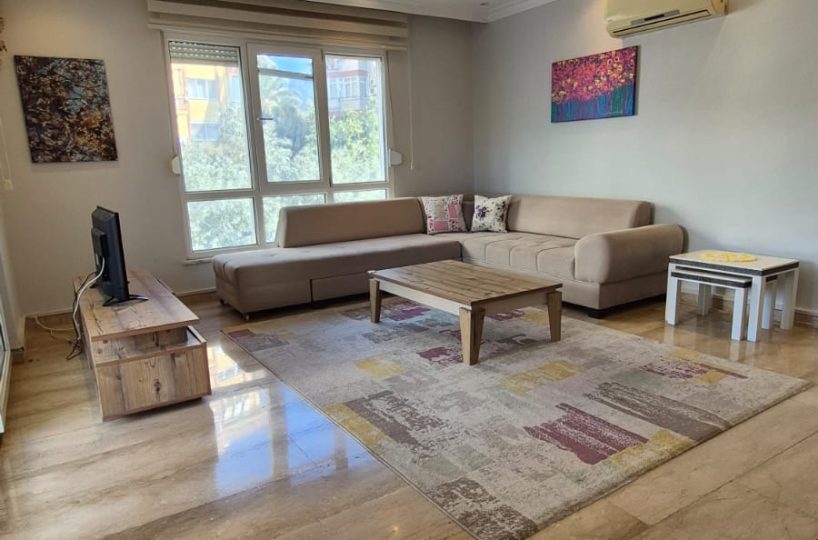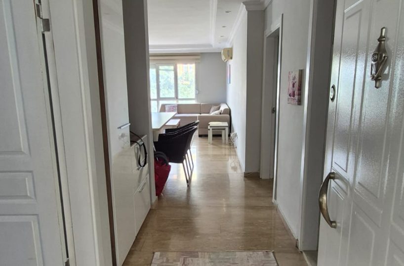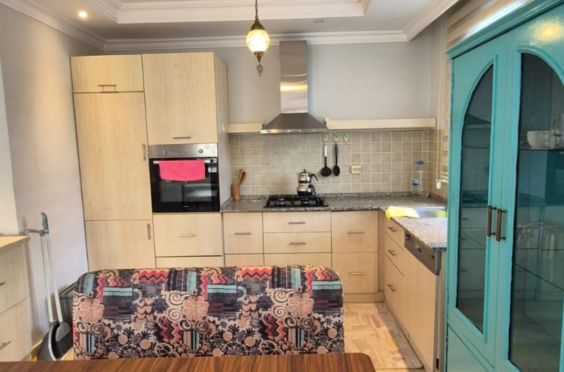 This first-floor apartment is offered fully furnished, providing a complete and ready-to-use living space. The interior architecture is structured to accommodate functional daily living, equipped with standard household appliances and necessary fixtures.