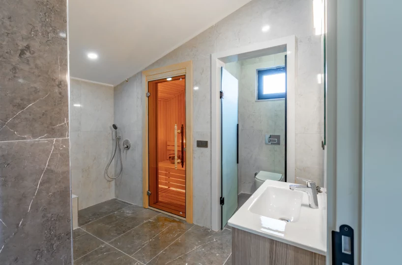 - Private Wellness: Features an internal, functionally equipped sauna and a traditional Turkish bath located entirely inside the villa for private use.