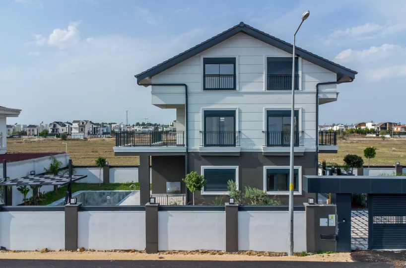 Located in the Serik district of Antalya, this three-story detached villa offers a fully independent residential environment. The Belek and Kadriye regions are geographically positioned to provide access to established sandy beaches, professional golf courses, and various outdoor activity centers. The construction phase is completely finished, presenting a move-in ready property equipped with standard infrastructure for continuous, year-round living.