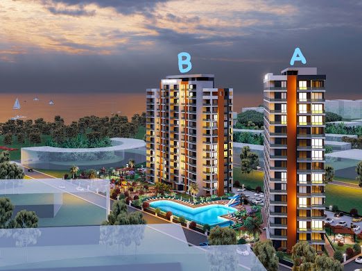 The project is located in the flourishing Tece neighborhood, known for its clean beaches and high investment potential. The development comprises two 14-story blocks, with this 1+1 unit situated in Block A. The project boasts a massive land area, ensuring that residents are not crowded and have access to plenty of social zones. With a completion date set for February 2026, buyers can benefit from the value appreciation that comes with a premium new-build property. The short 360-meter walk to the beach makes it a prime choice for those who love the sea.