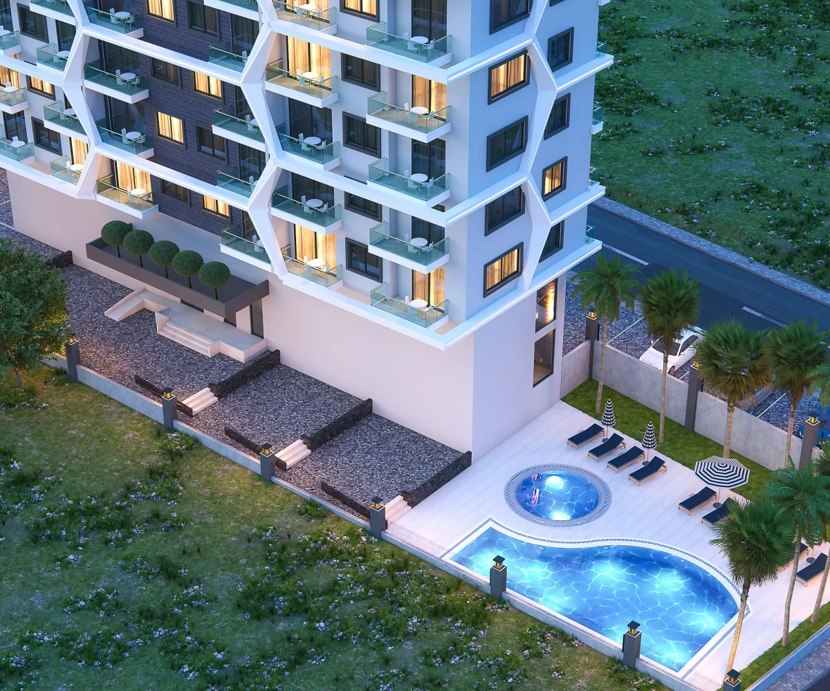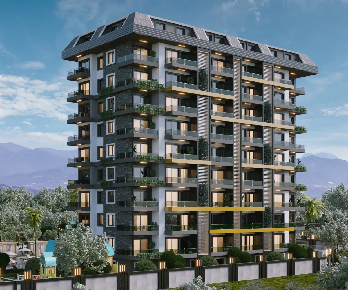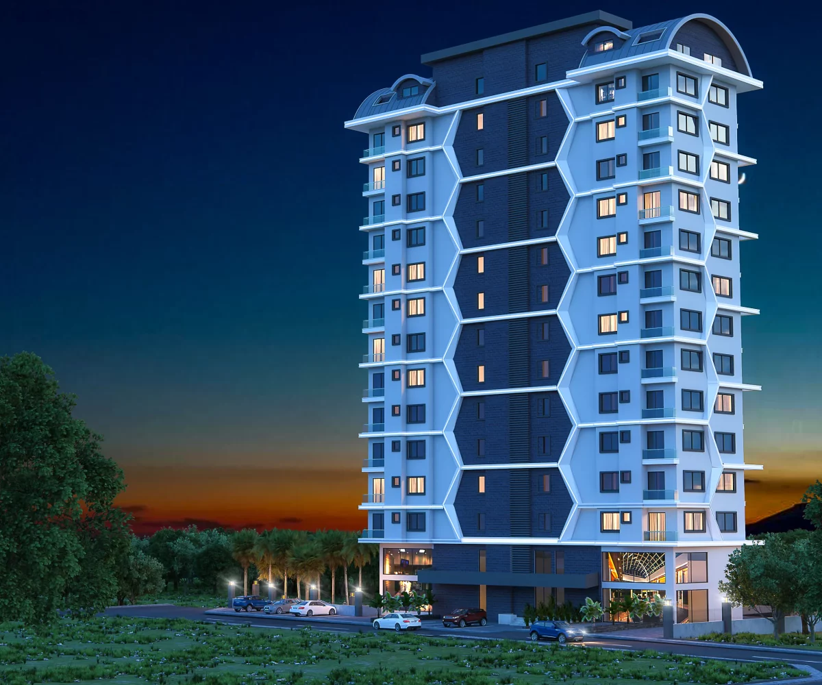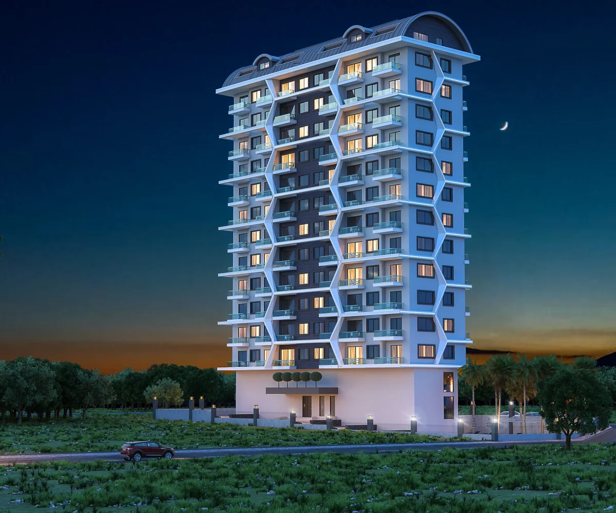 Ten projekt apartamentowca ze 120 luksusowymi mieszkaniami zostanie wzniesiony w Mahmutlar do grudnia 2024. Budowa rozpoczyna się w styczniu 2022. Działka znajduje się w niewielkiej odległości od przystanku autobusowego, centrum handloweg i infrastruktury miasta, a od plaży dzieli ją 670 metrów. Budynek ma bardzo nowoczesną bryłę i nowoczesny wygląd. Wśród zewnętrznych i wewnętrznych udogodnień znajdziemy […]