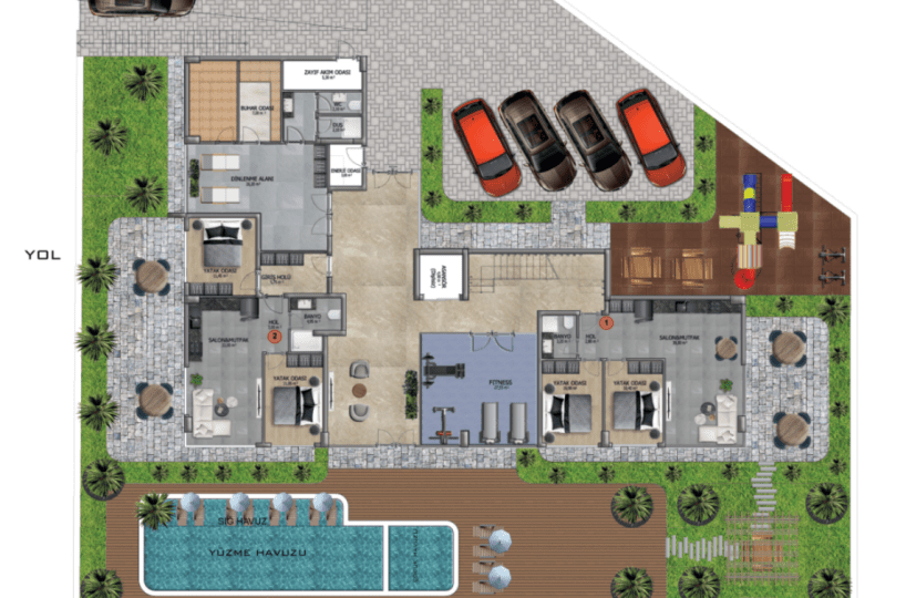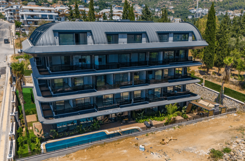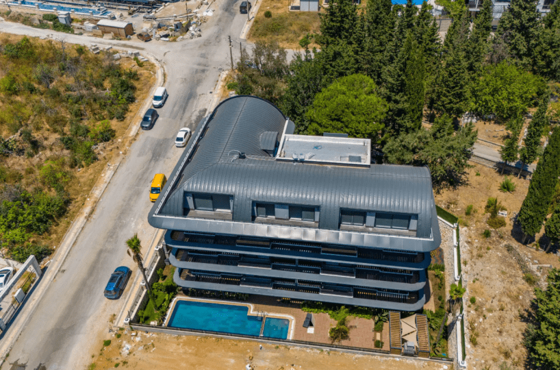 Luksusowe, niewielkie osiedle z pięknymi widokami w Buyukhasbahce, w jednej z najbardziej elitarnych dzielnic Alanyi z dala od chaosu miasta. Odległość do morza wynosi 1600m, a w pobliżu znajduje się wiele szkół.