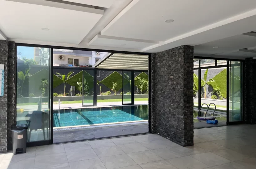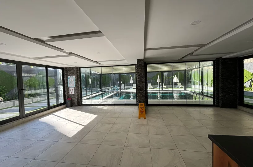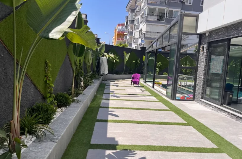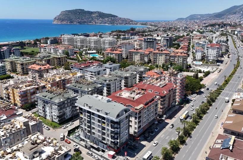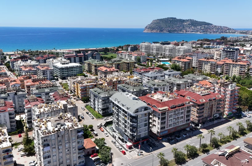Apartament w centrum Alanyi, zaledwie 550 m od plaży. Jest to jeden blok z udogodnieniami, takimi jak podgrzewany basen, jacuzzi, siłownia, sauna i plac zabaw dla dzieci.