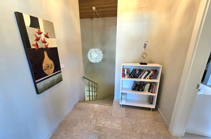 Apartament znajduje się na czwartym piętrze czteropiętrowego budynku, oferując obszerną powierzchnię mieszkalną brutto wynoszącą 220 m². Układ zapewnia dużo miejsca zarówno na prywatność, jak i spotkania towarzyskie, a dwa poziomy pozwalają na wyraźne oddzielenie strefy dziennej od sypialnej.