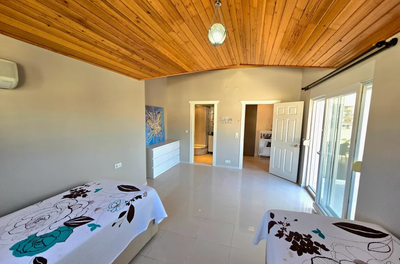 • Przestrzeń Mieszkalna: Całkowita powierzchnia brutto 220 m² obejmująca wewnętrzne salony, trzy sypialnie oraz rozległe przestrzenie zewnętrzne.