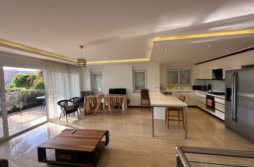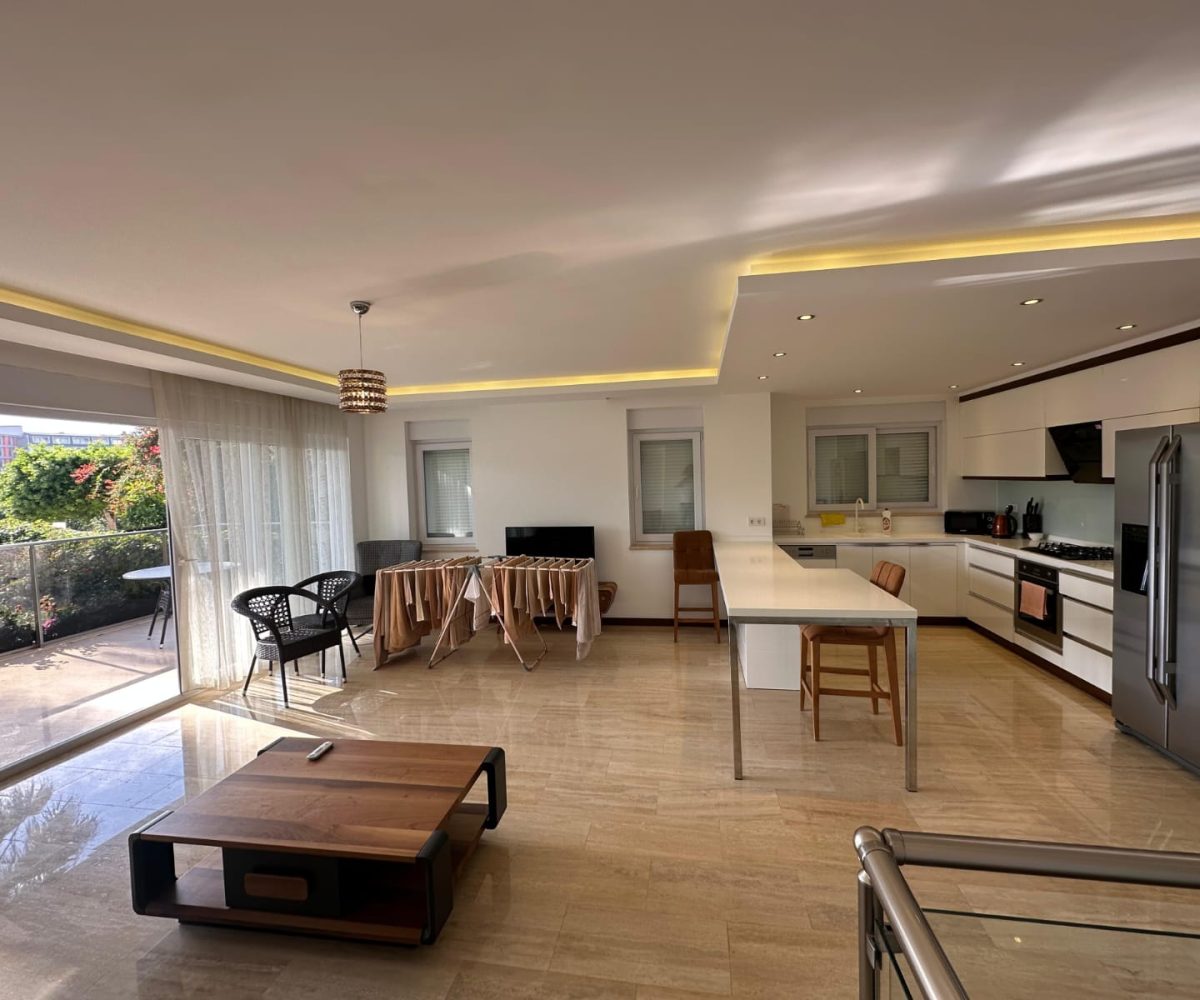 Ciesz się elitarnym stylem życia w tym ogrodowym dupleksie o koncepcji willi, położonym w spokojnej nadmorskiej dzielnicy Konakli. Ten butikowy projekt oferuje idealne połączenie prywatnego luksusu z kompleksową infrastrukturą kurortu w odległości spaceru od wybrzeża Morza Śródziemnego.