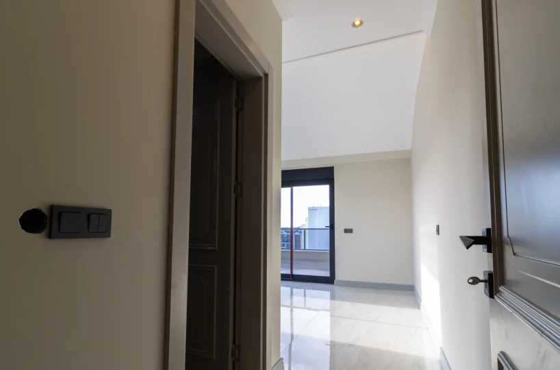 Ten nowo oddany do użytku penthouse znajduje się na najwyższych piętrach kompleksu mieszkalnego w rozwijającej się nadmorskiej dzielnicy Kargıcak w Alanyi. Położona 300 metrów od plaży, nieruchomość oferuje praktyczne środowisko życia z widokiem na góry Taurus skierowanym na północ. Społeczność mieszkaniowa jest w pełni funkcjonalna i gotowa do natychmiastowego zamieszkania, łącząc prywatność wielopoziomowego domu z rozległymi udogodnieniami kompleksu.