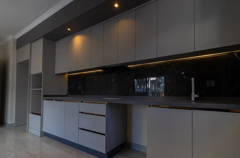 - Kuchnia: Wbudowana zabudowa z nowoczesnymi wykończeniami i funkcjonalnym designem.